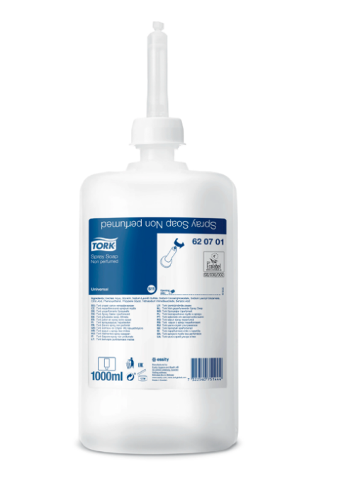 Обслуговуйте більше відвідувачів меншою кількістю. Мило-спрей Tork - це 3000 порцій мила для рук без віддушки і барвників, що ніжно доглядає шкіру. Це мило ідеально підходить для туалетних кімнат з високою відвідуваністю, де основна увага приділяється ефективності. Підходить для диспенсерів для рідкого мила та мила-спрею Tork. Диспенсери Tork надійні та комфортні у використанні.
